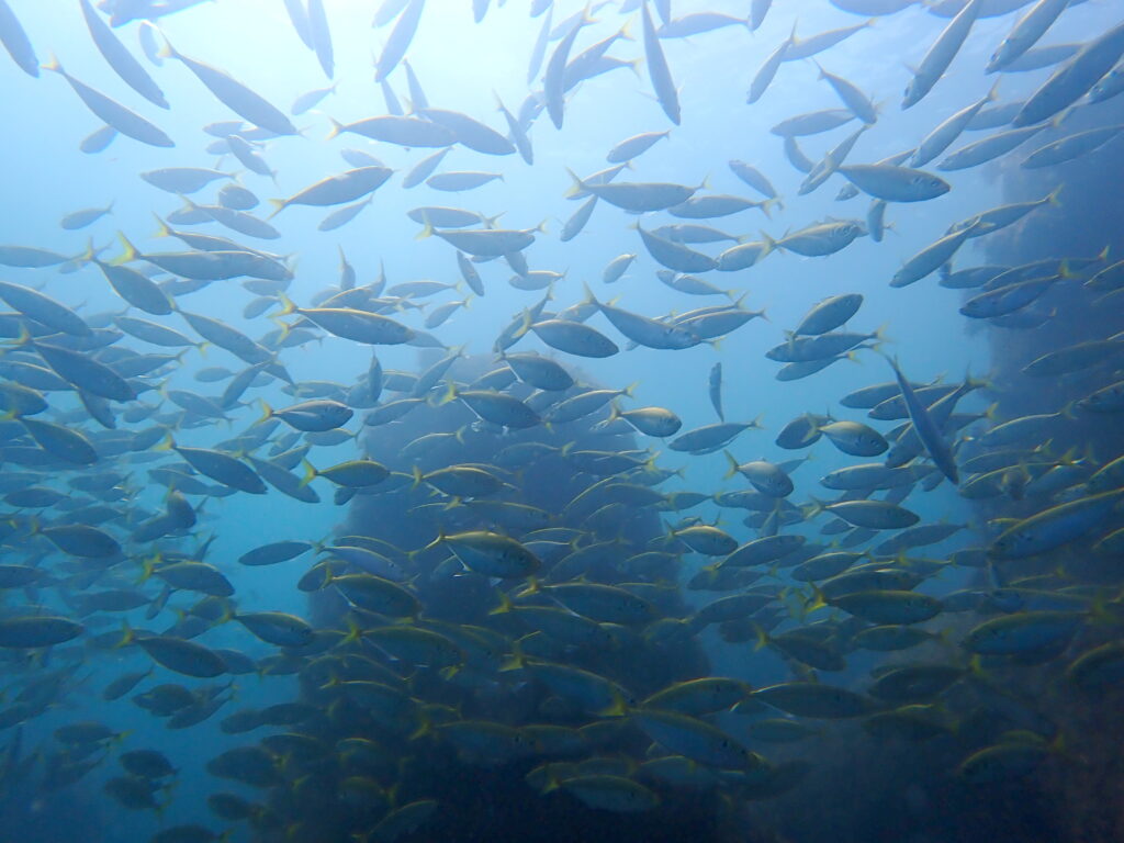 テトラポットのアジの群れ、水面近くのタカベの群れが圧巻です。ホントに凄い。ここだけで3本行けますね。透視度も良好なり。テトラポットには大きなヒラスズキや大きなブリも居ました。かなり楽しい八幡野ビーチでした。天気 晴れ 気温29℃ 水温21~27℃ 透視度 10m~ 海況 穏やか https://www.reefraiders.xyz